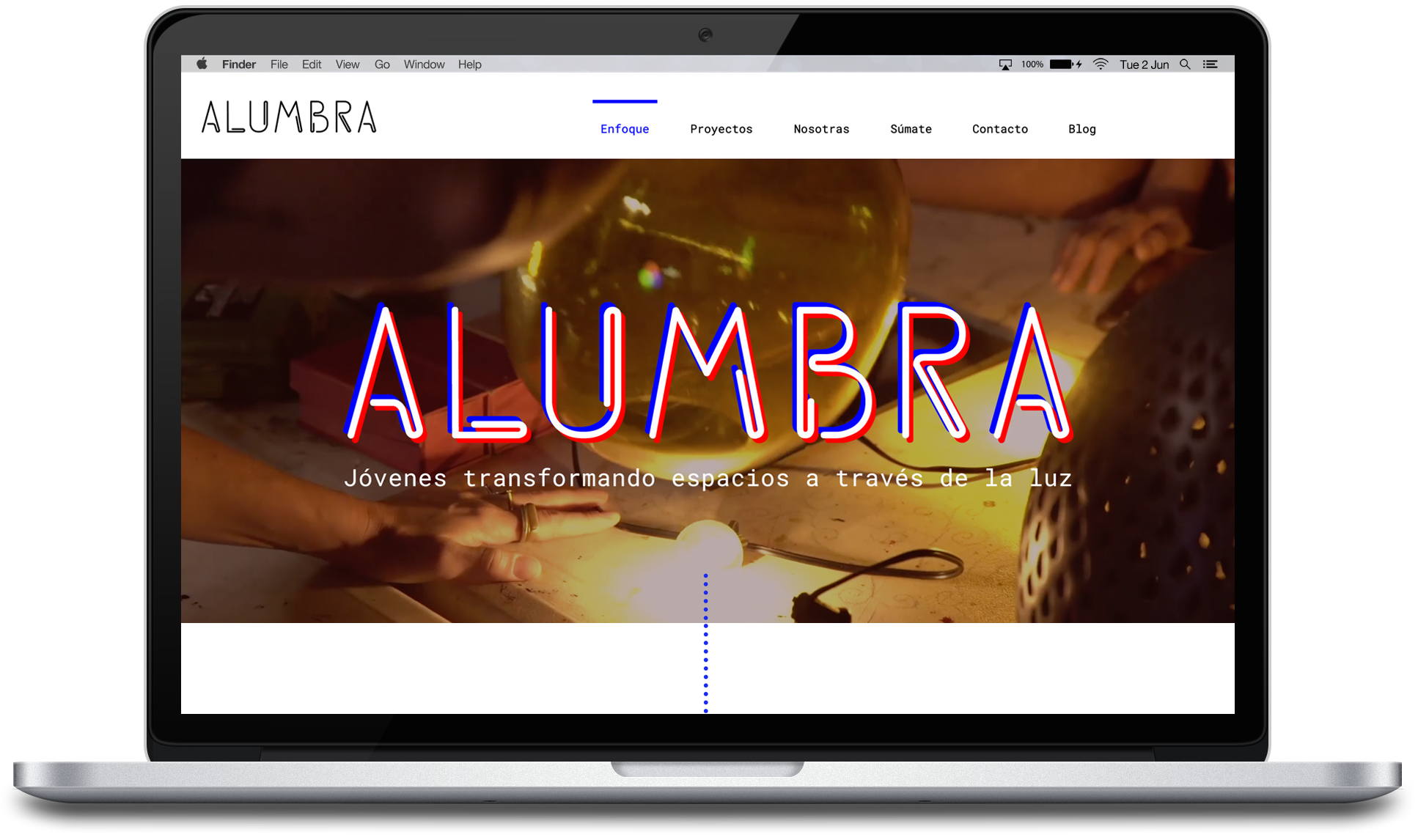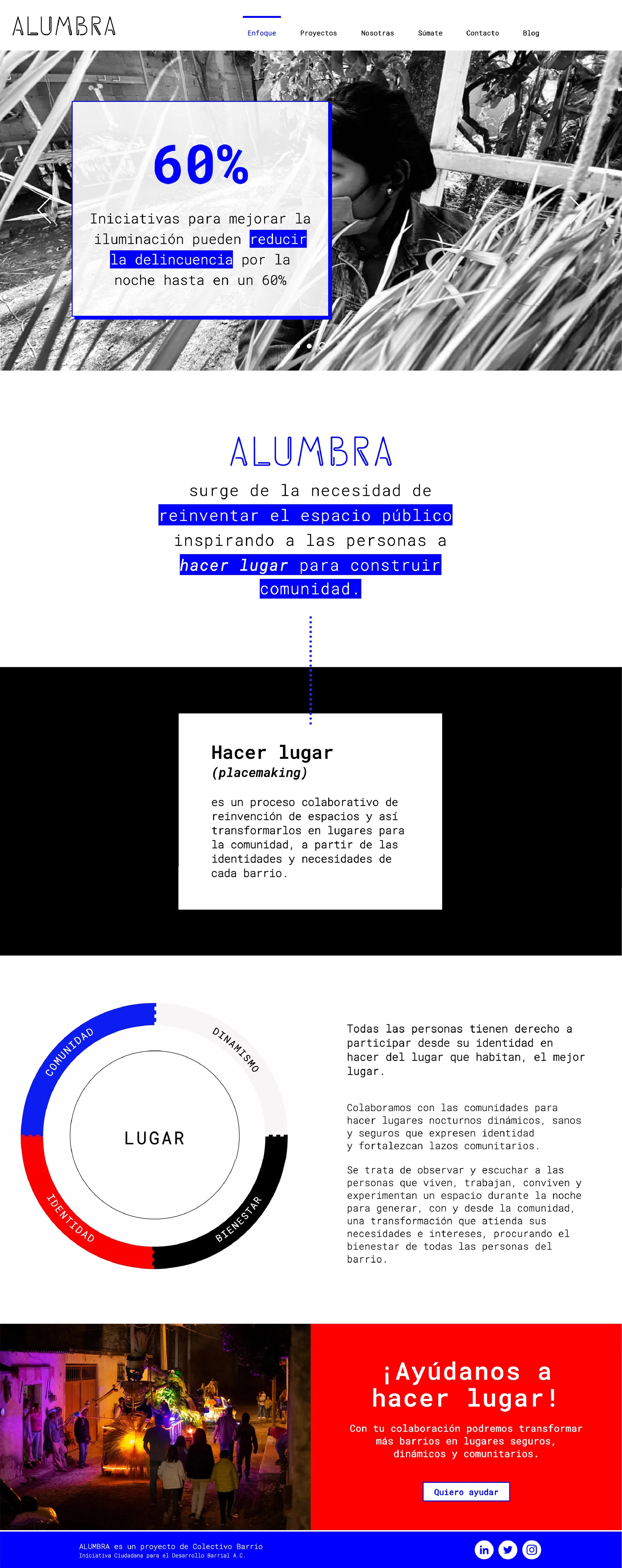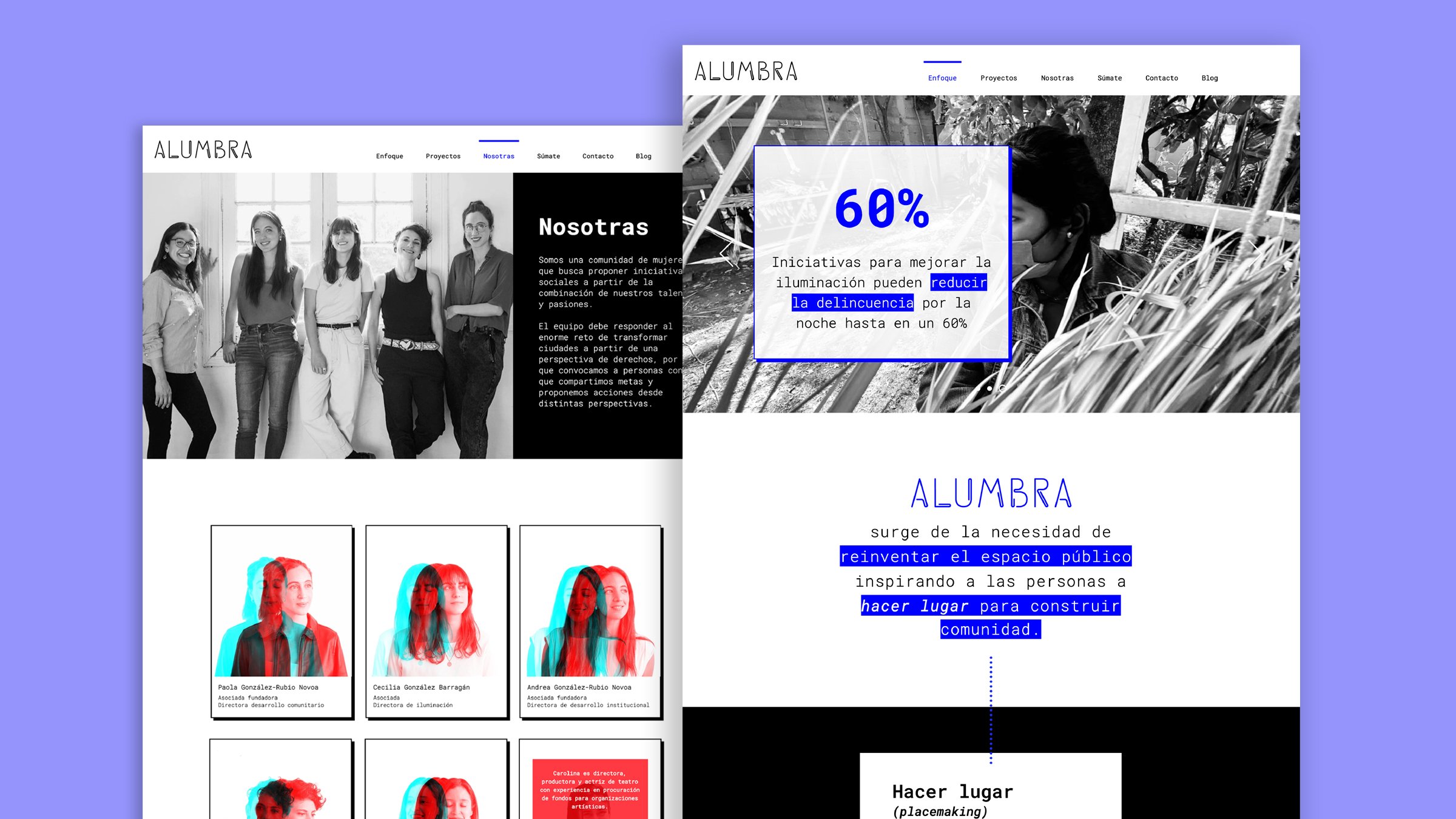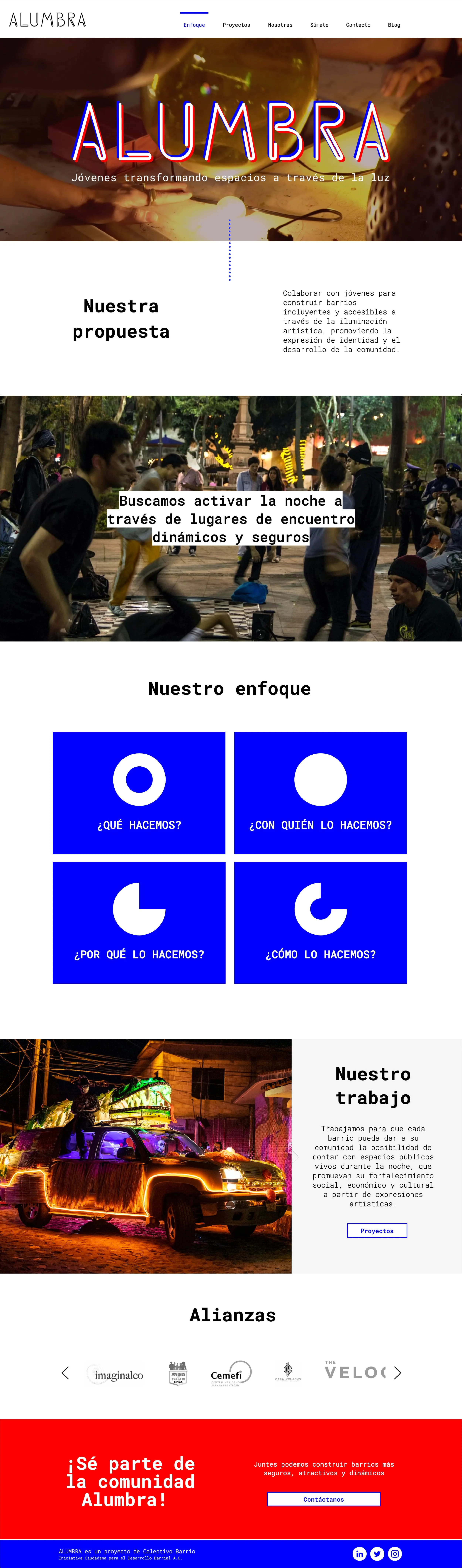 Web design for Alumbra, a women-led collective in Mexico City empowering local youth to transform public spaces through artistic lighting.