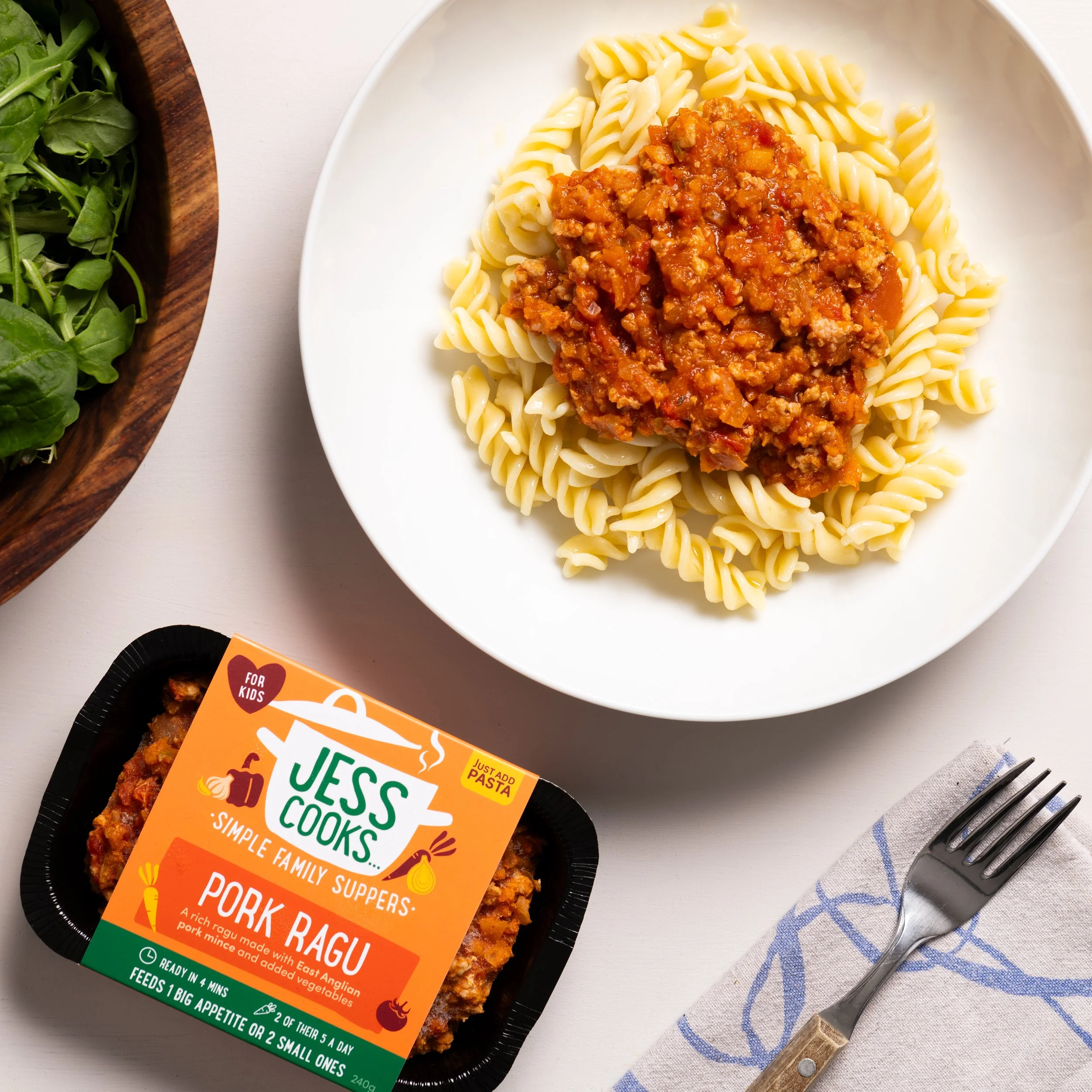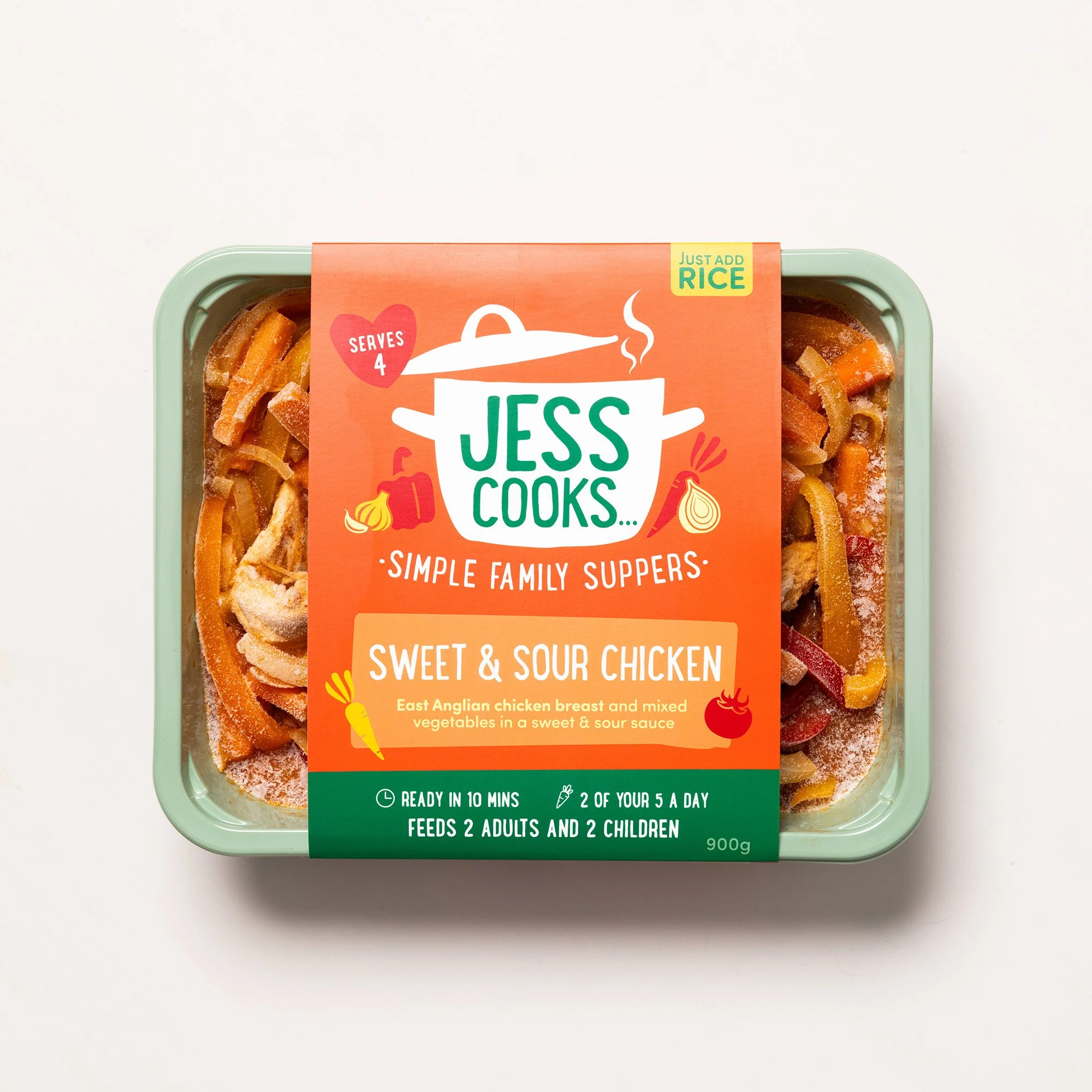 Branding refresh and packaging design for Jess Cooks, a UK-based range of chef-prepared healthy kids & family meals.