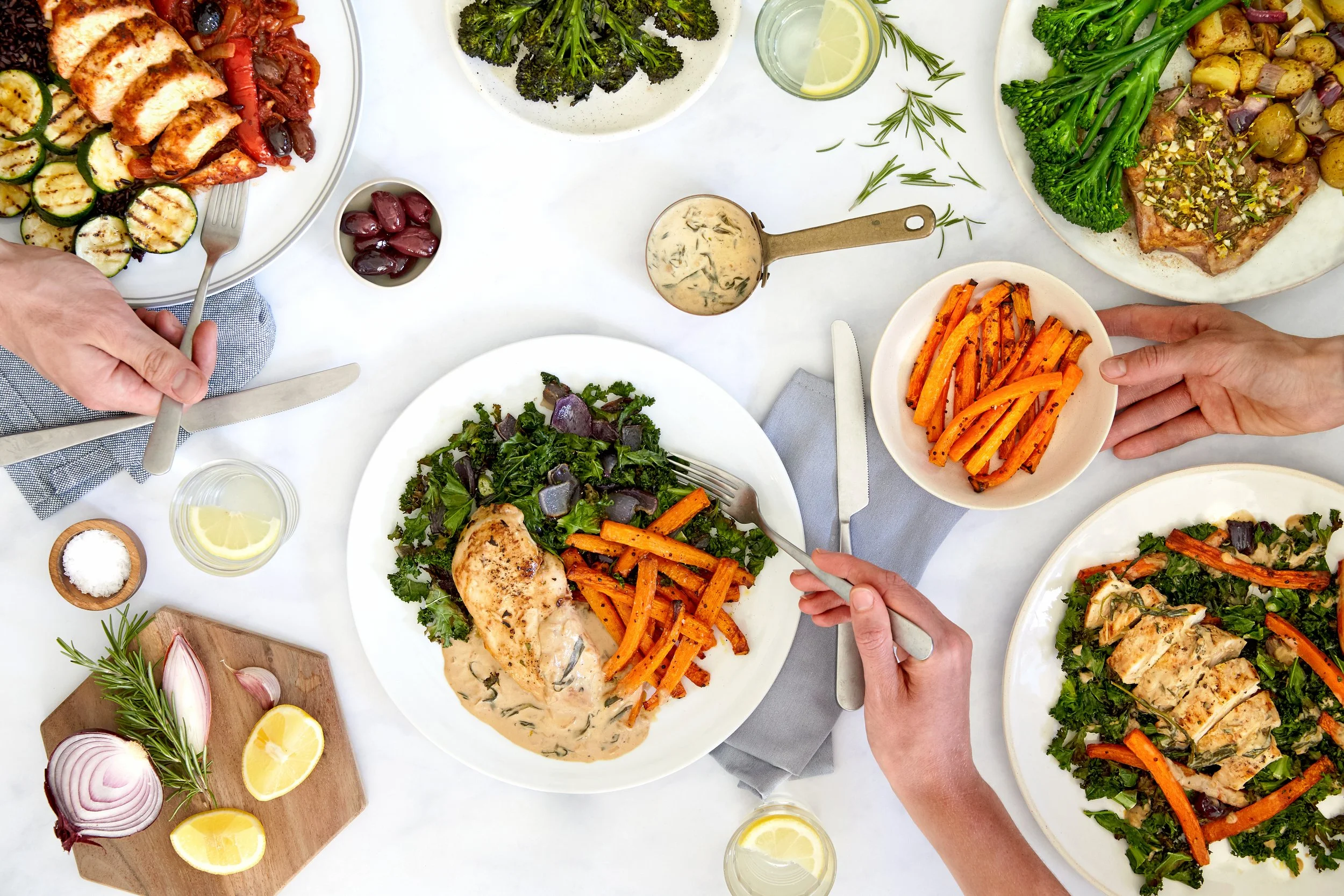 Food styling and art direction for Mindful Chef's product and lifestyle photography, spanning weekly in-house recipe photography through to full advertising campaigns featured across London and the UK