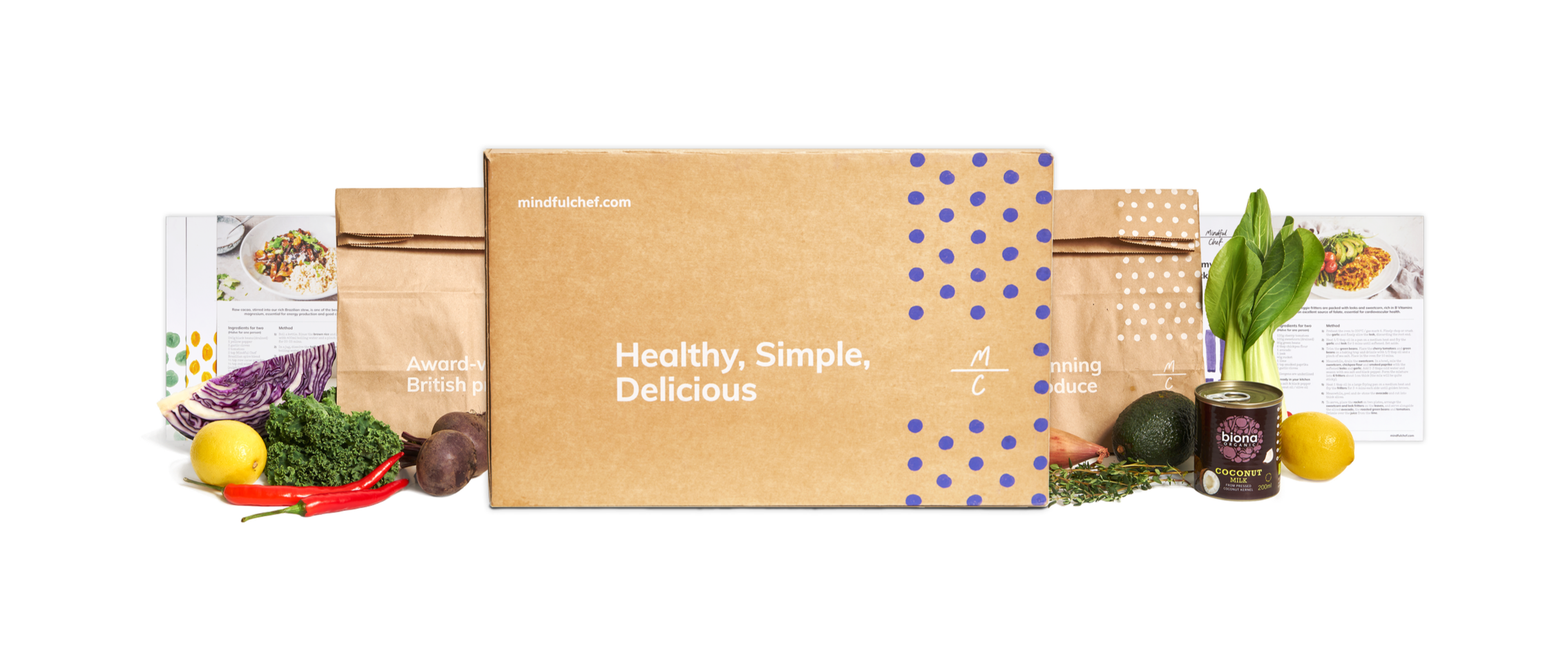 Packaging redesign for Mindful Chef, one of the UK's leading healthy recipe box services. As a fast growing company, there was an urgent need to refresh and unify the brand across every physical touchpoint.