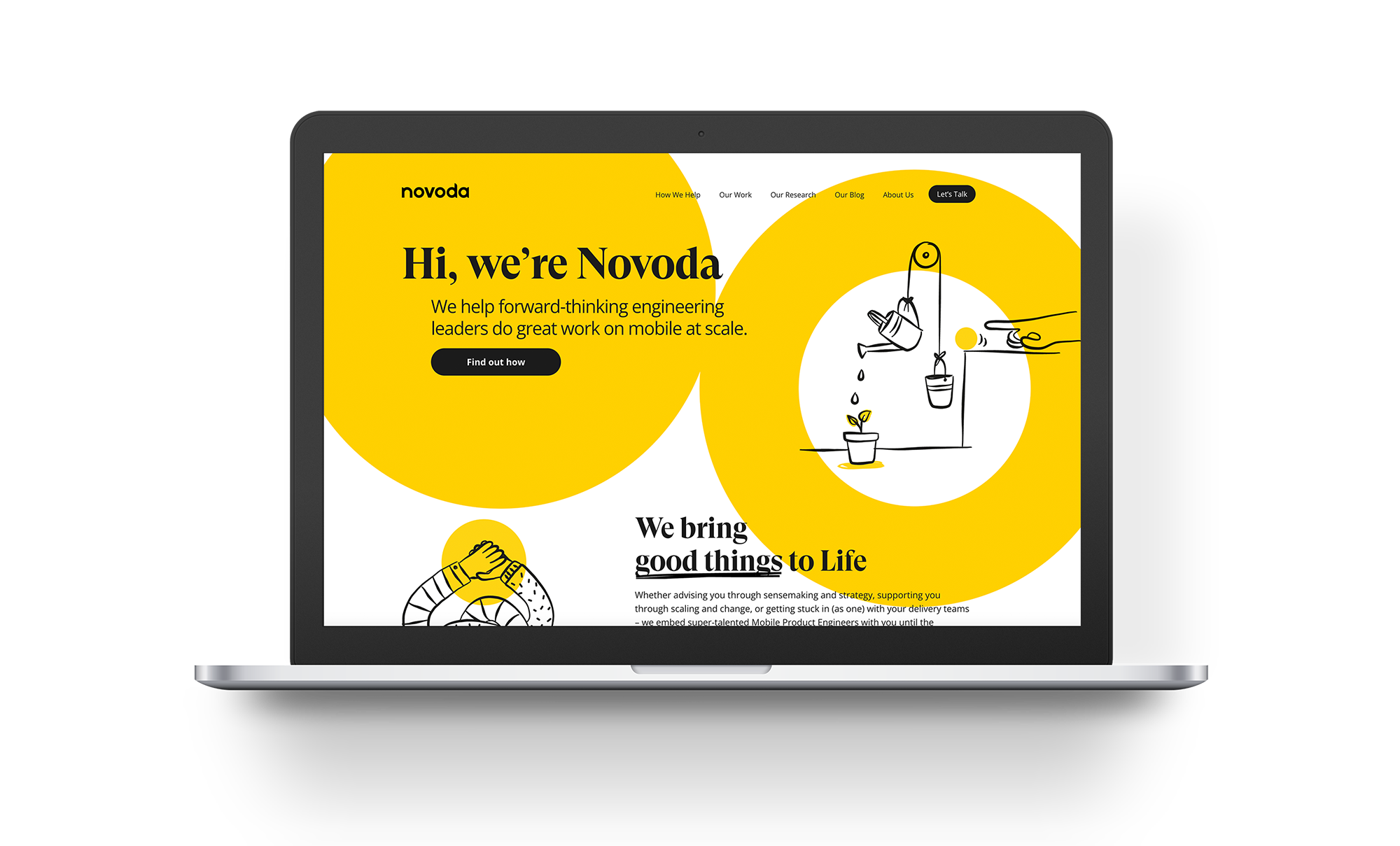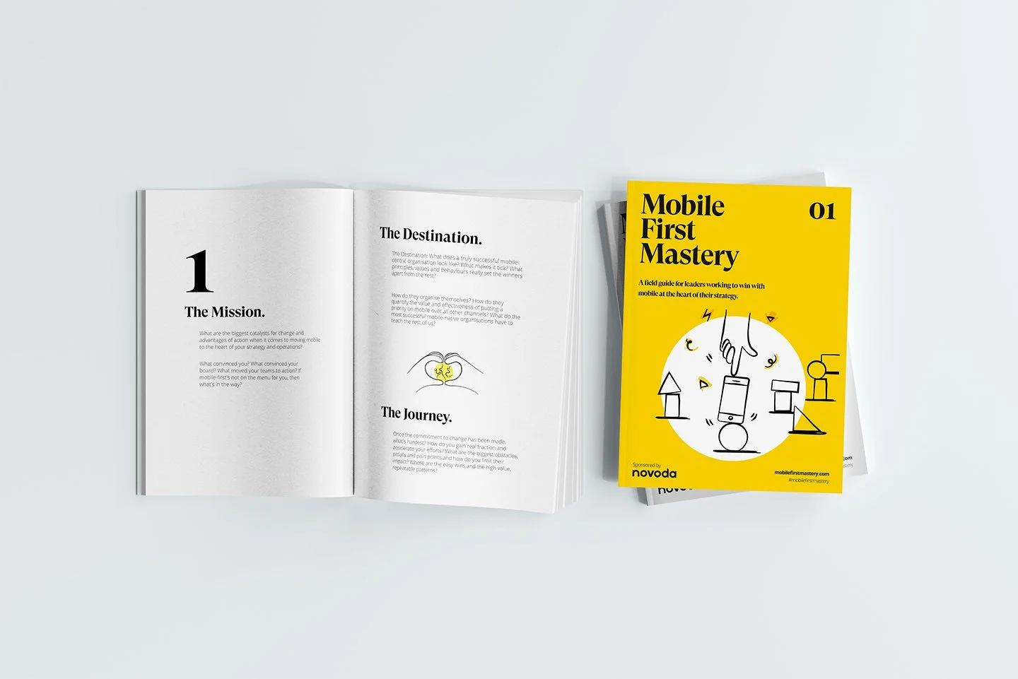 The brief called for translating complex technical concepts into a visual language that felt human, playful and distinctly Novoda. The result was a flexible illustration system used across their website, brand collateral and internal communications.